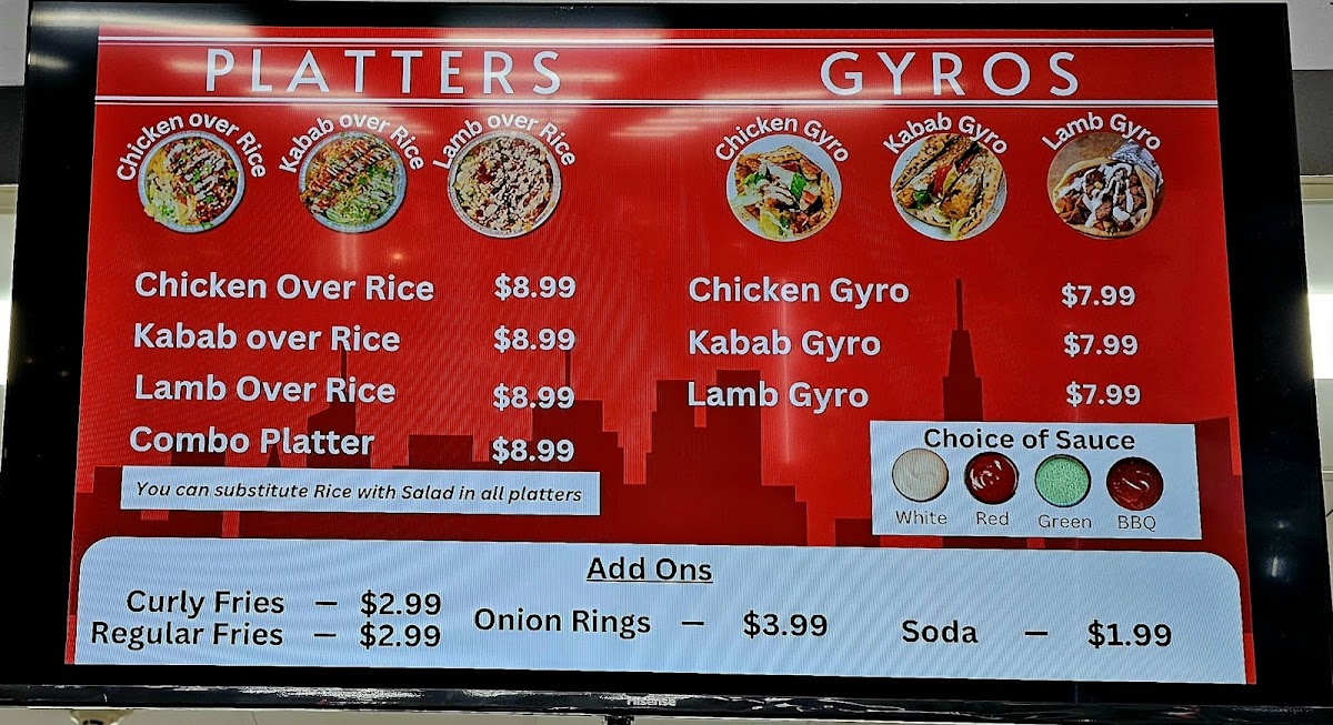 The menu features standout items like the Double Cheese Burger and the Double Spicy Crispy Sandwich, blending juicy grilled chicken or beef with melty cheese and zesty sauces. For rice lovers, their Chicken Over Rice and Combo Over Rice deliver marinated grilled goodness, accompanied by fresh salads and perfectly fluffy basmati rice.
